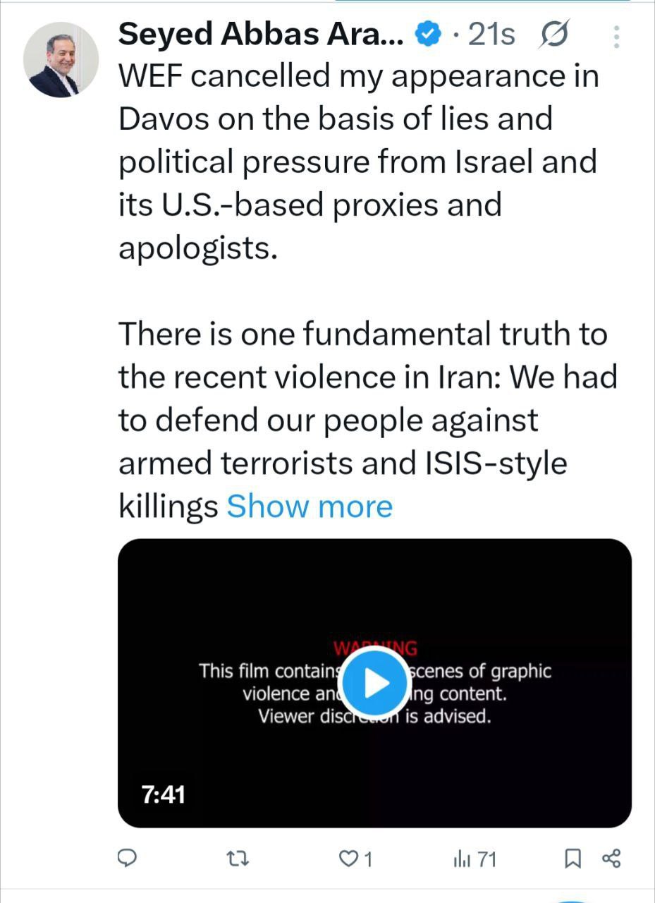 پیام وزیر امور خارجه در شبکه ایکس راجع به اهمیت روشنگری در مورد واقعیت حوادث اخیر در ایران