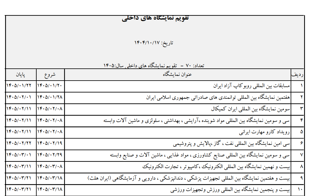 تقویم نمایشگاهی سال 1405 جمهوری اسلامی ایران